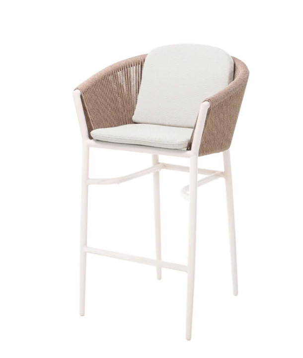A Coconut bárszék természetes hatású, modern kültéri ülőmegoldás, amely ideális választás bárokba, teraszokra vagy vendéglátóhelyek magasasztalos részeihez. A modell elefántcsont színű, porszórt alumínium vázzal készül, amely könnyű, mégis stabil és időjárásálló szerkezetet biztosít.