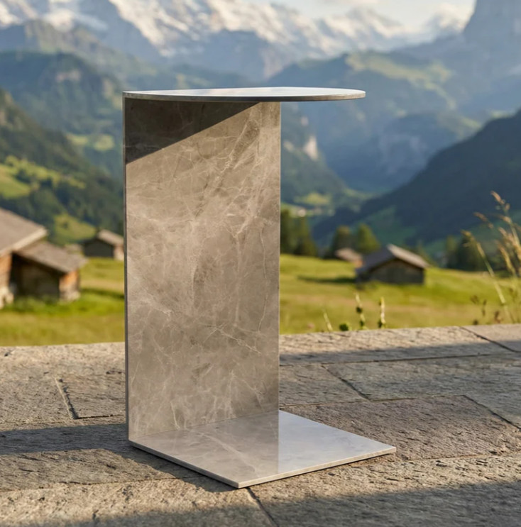 A Divano kisasztal kompakt, modern kialakítású kültéri lerakóasztal, amely ideális kiegészítő lounge bútorok mellé, teraszokon vagy vendéglátóhelyek pihenősarkaiban. A modell teljes egészében világos kőhatású (steindekor) bevonattal ellátott alumíniumból készül, így egységes, letisztult megjelenést biztosít.