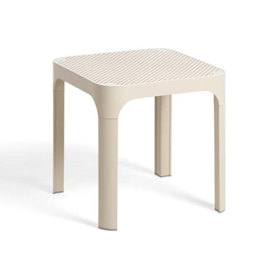 Egy kifinomult, alacsony asztal szögletes tetejű és lekerekített sarkokkal, perforált mintával díszítve. Tökéletesen illik a Net székek kollekciójához.