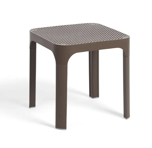 Egy kifinomult, alacsony asztal szögletes tetejű és lekerekített sarkokkal, perforált mintával díszítve. Tökéletesen illik a Net székek kollekciójához.