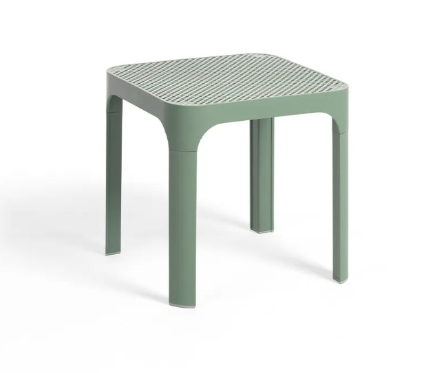 Egy kifinomult, alacsony asztal szögletes tetejű és lekerekített sarkokkal, perforált mintával díszítve. Tökéletesen illik a Net székek kollekciójához.