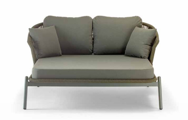 Időtálló szerkezet: A porszórt alumínium vázat 8 mm vastag textilén kötél borítja, amely nemcsak esztétikus, hanem ellenáll az időjárás viszontagságainak is.